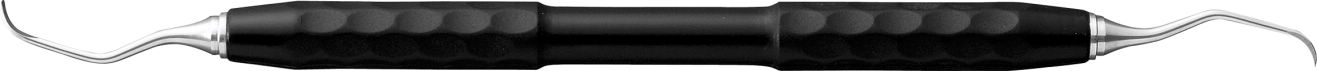 きつい湾曲が多い「日本人の歯」と欧米人より小さい「日本人の手」に適した設計のキュレット。2本で全顎の処置が可能です。両刃のため、歯周掻爬も同時に行えます。