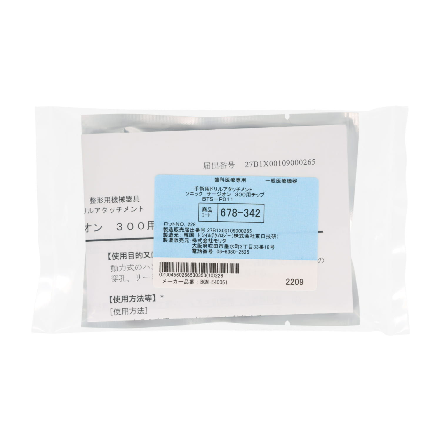 医療機器届出番号 27B1X00109000265
