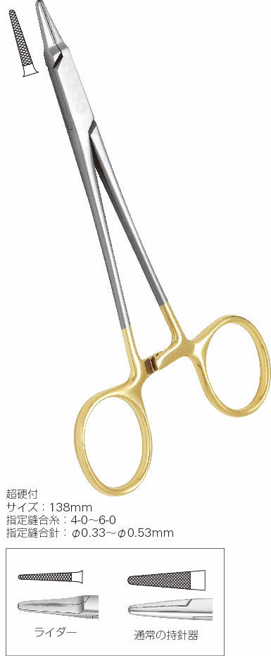 先端がスリムなので操作がしやすく、視野の確保にも有効です。※サイズ140mm※指定縫合糸4-0~6-0
