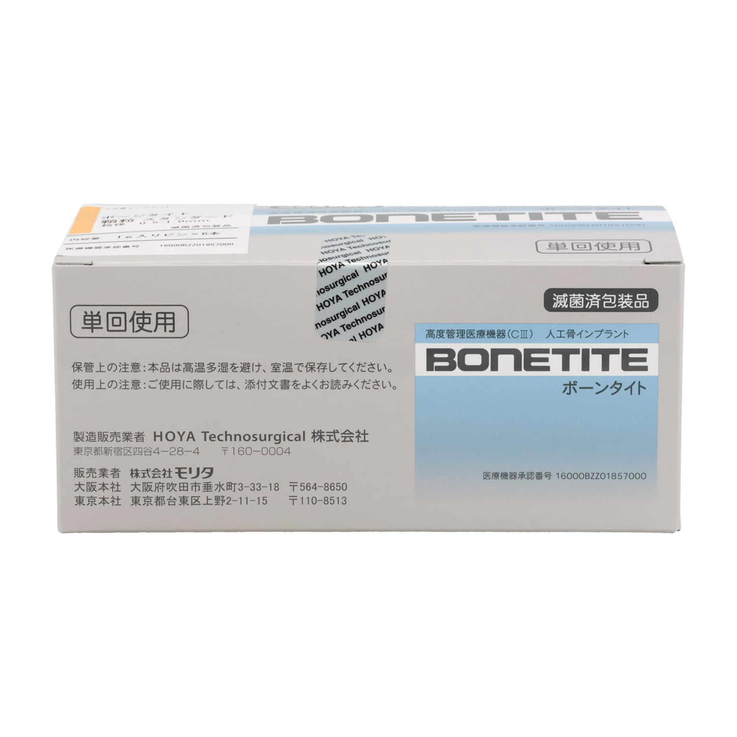 骨の主要無機成分であるハイドロキシアパタイトを高純度の原料に用い、厳重な管理の下に合成した歯科用セラミック人工骨です。ボーンタイトは生体適合性や細胞付着性に優れています。形状は顆粒で、粒径は0.5mm~1.0mmです。充填には別売りのボーンタイト専用注入器スタンダードのご使用をお奨めいたします。