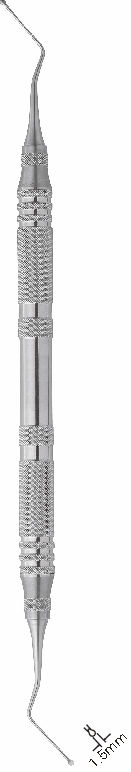 マイクロサージェリーにおける外科的歯内療法での軟組織病変の掻爬除去に使用。シャンクが長い為、深い術部に届きやすくまた、顕微鏡下で視界の邪魔になりません。※この画像は「鋭匙 MS #1」の画像です。