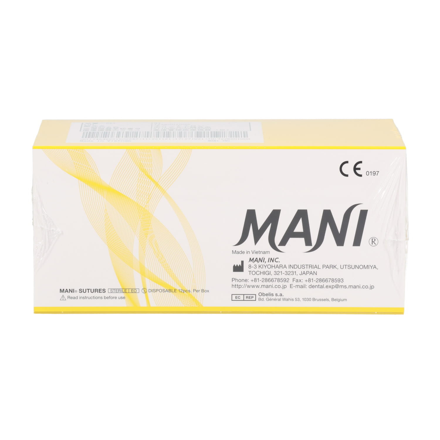 耐久性に優れ適度な柔軟性と硬度を併せ持った「マニー・ハードファイバー・ステンレス・スチール」を採用しています。正確な寸法、シャープなエッジ、鏡面仕上げなど、優れた加工精度です。また、針と糸部の接合部をレーザー接着しているため、組織を傷めにくい縫合が可能です。