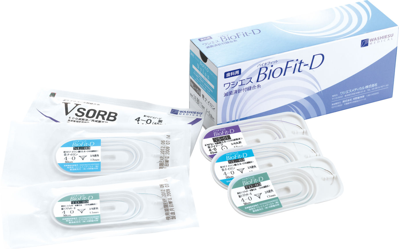 3種類の糸と3種類の断面形状針(丸針・逆角針・平型針)による豊富なラインナップにより幅広い症例にも対応可能です。また、審美性にも配慮した糸も加え、マイクロサージェリー用のラインナップも取りそろえてございます。