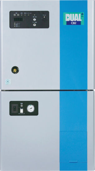 | 仕様 | - 寸法:W550(750)×D710(900)×H999(1200)mm( )内は最低設置寸法 - 質量:約152kg - 電源:3相200V - ベルト:3VX-450(50Hz)/3VX-425(60Hz) - 空気タンク容量:35L - 最高圧力:0.83MPa - 出力:1.50kW - 制御圧力:0.55~0.83MPa(標準モード) - 騒音:約52dB - 電流:8.0/7.6A(50/60Hz) |