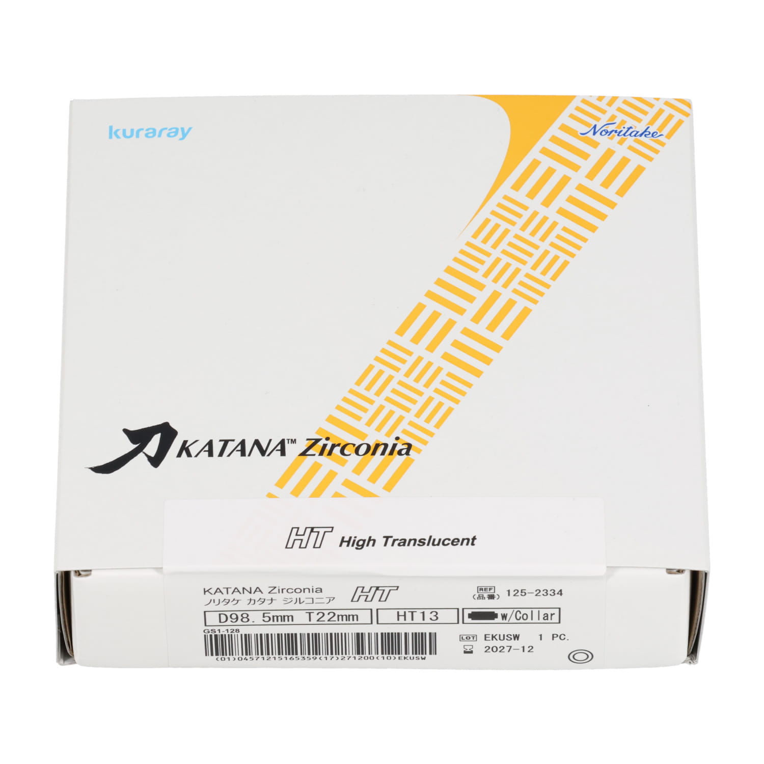 従来のノリタケカタナジルコニアKDシリーズに比べ透光性をUPさせたものです。色調はHT10(ホワイト)と、HT12、HT13の3色からなります。