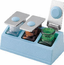上部カバーをハネ上げるだけで開閉が行えます。従来のガラスキャップと異なり、手で開閉する煩わしさがありません。今までご使用の薬瓶(26×26mm)がそのまま使えます。※青色部/材質Si 耐熱温度260℃