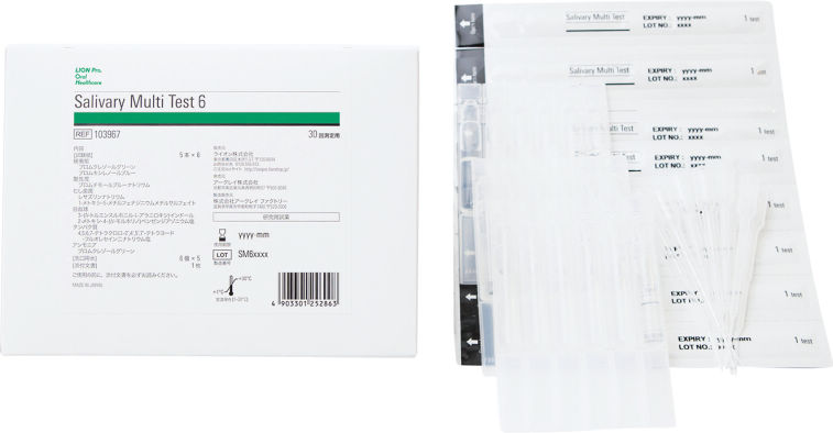 | 仕様 | 【仕様】<検査キット内容> 試験紙(Salivary Multi Test) 30本(5本×6) 洗口用水(3ml) 30個(6個×5) スポイト 30個 添付文書 1部 |