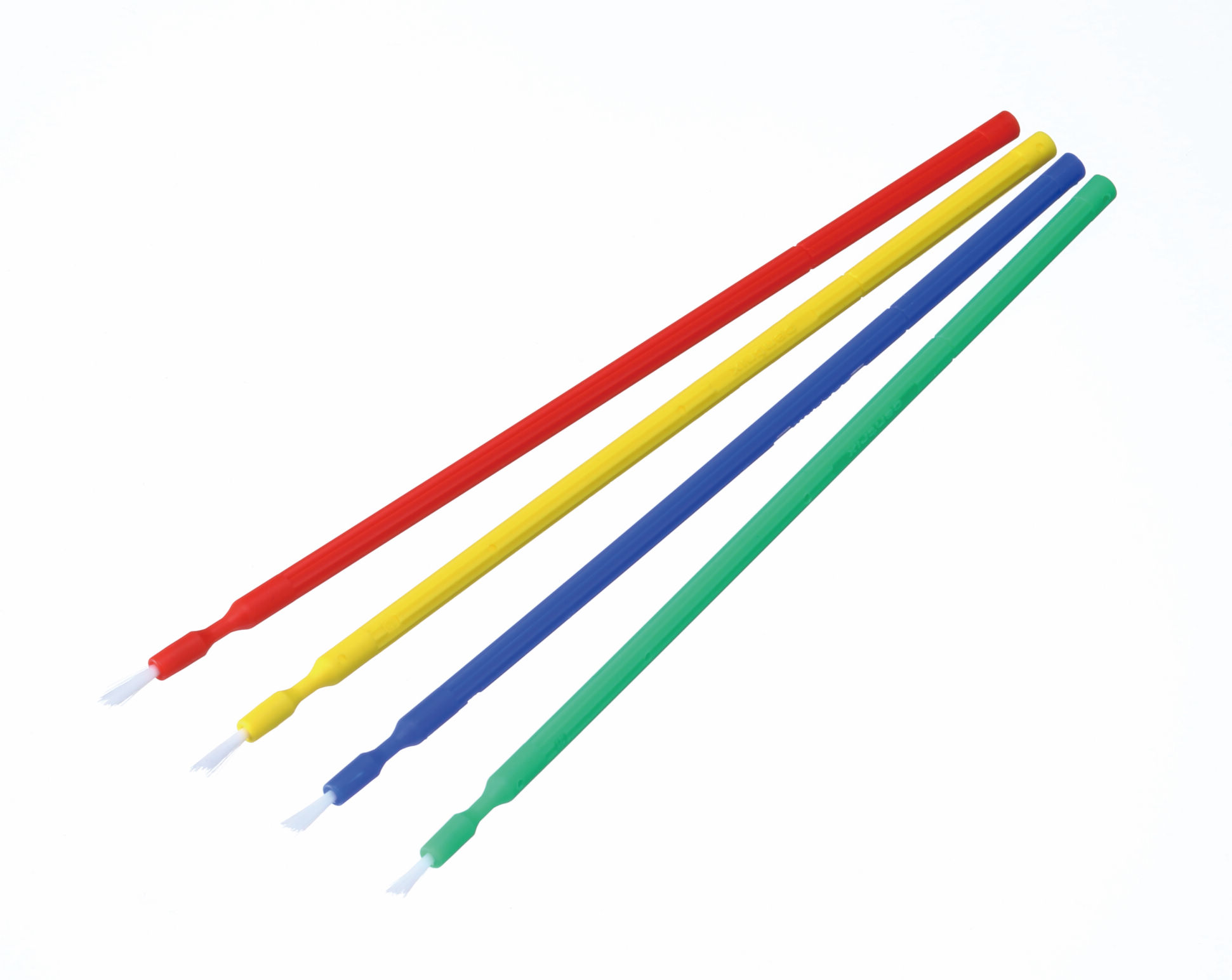 操作性に優れ、衛生的な歯科用多目的ディスポブラシです。必要なアングル(角度)に先端部の方向を変えられ、少量の液剤でもしっかり保持 し、目的部位へ精密に塗布できます。ミニはブラシヘッド、マイクロ(3種)はファイバーヘッドです。