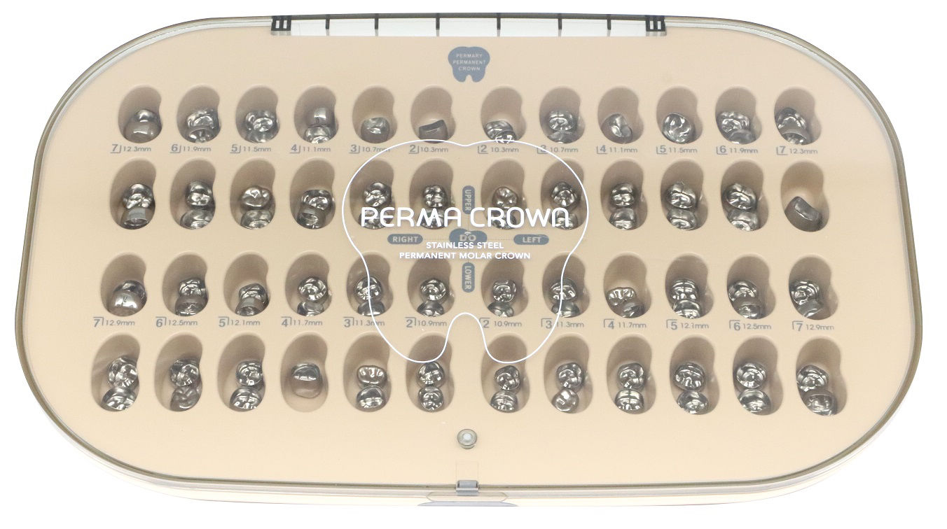 解剖学的形態が付与されており最終補綴物として咬合が可能です。トリミングしやすいステンレススチール製。汚れがつきにくいシリカコーティング加工。