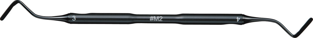 精密治療およびグリップしやすく、マイクロスコープ下でも視野を確保出来やすいハンドル形状です。3本(6形態)で臼歯部、前歯部の殆どのCR充填に対応可能です。患者様が怖がらないように全体的に光反射し難い黒ベースのインスツルメントになっています。