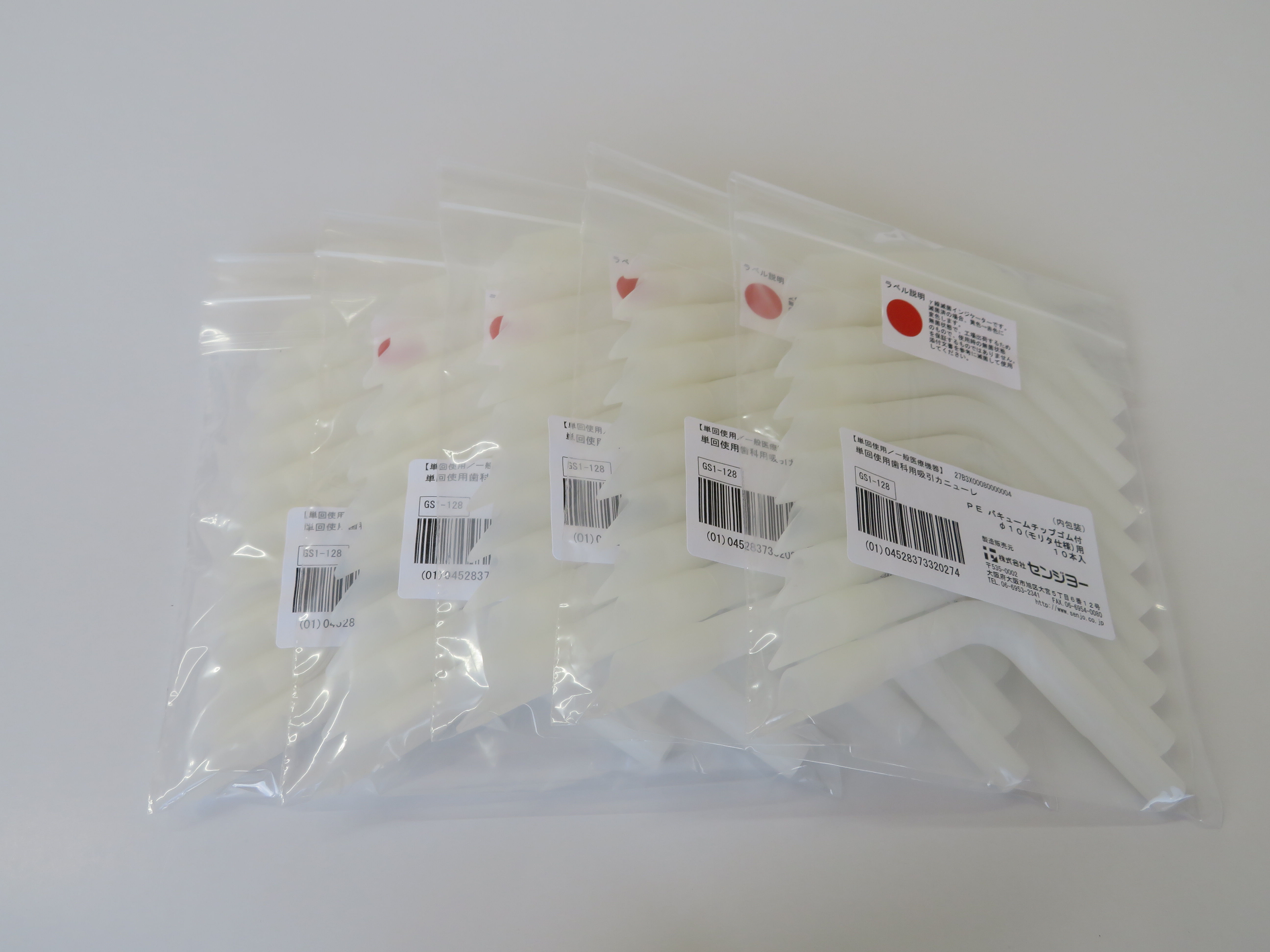 ディスポーザブルタイプの歯科用吸引カニューレです。ディスポーザブルタイプのため、洗浄作業から開放され、感染リスクも減少します。先端ゴム取り付け部分を段付きにしているため、ゴムの根元の「かえり」による抵抗感が少なくなっています。樹脂製のため軽量で、術者の手首等への負担を軽減しています。