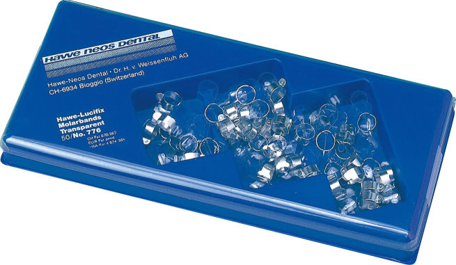 臼歯部の光重合型コンポジットレジン充填等の形態修復、インレー装着時のエッチングやボンディングの際における隣接歯の保護に用いるマトリックスバンドです。メタルリングを閉じ合わせるだけで歯牙に沿って容易にマトリックスの装着が行えます。マトリックスが透明なので、あらゆる面から光照射できます。
