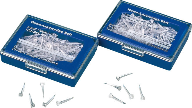 臼歯部の光重合型コンポジットレジンによる修復時に、ルシフィックスマトリックスバンドと併せて用います。ウェッジ内部で光が屈折する構造なので、光照射時に硬化光が到達しにくい隣接面に硬化光を届きやすくすることができるため、未重合部が残りません。