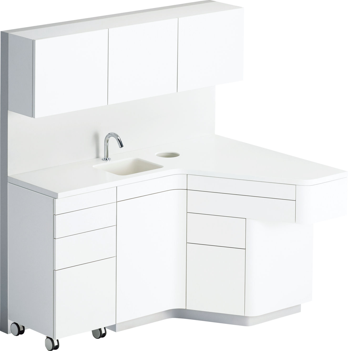 | 仕様 | 【仕様】 - 外装:メラミン化粧版 - 内装:ポリエステル化粧合板(F☆☆☆☆抗菌仕様) - カラー:ホワイト - 外形寸法:L型 W1,800×D1,145×H1,700mm(作業面高さ900mm) I型 W1,500×D505×H1,700mm(作業面高さ900mm) - 質量:L型 155~160kg I型 120~125kg、モービルキャビネット約22kg |