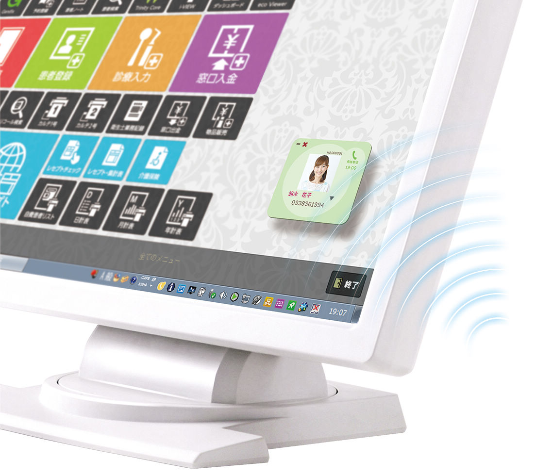 院内受付の電話機(ナンバー・ディスプレイ対応)と連動しているので患者さんから電話の着信があると『DOC-5PROCYON3』と連携し患者さんの情報をポップアップで表示します。