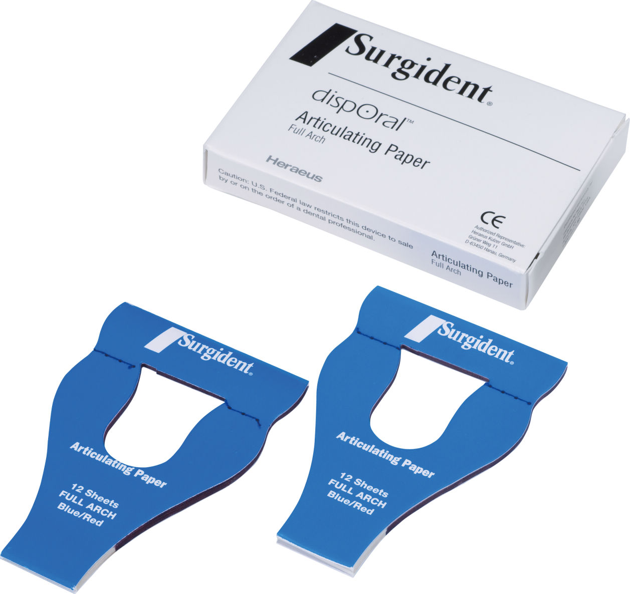 非常に鋭敏な赤青2色の咬合紙です。紙は薄く、綴りからの取りはずしが簡単で術者の指を汚さぬようにセフティータブがついています。きわめてわずかな咬合圧でもシャープで正確なマークが採得できます。