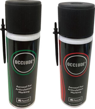 クラウン・ブリッジの咬合チェック用です。歯牙表面だけではなく、あらゆる種類の修復材へも使用できます。また、クラウン内面に塗布し、接触部位の発見にも利用できます。エアゾールタイプのため簡単に塗布でき、マークは水で容易に洗い流すことができます。レッドとグリーンの2色があり、併用することにより一層明確に接触部位を確認することができます。