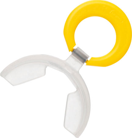 2)指しゃぶりなどに代わって器具をやさしく、くわえさせて下さい。