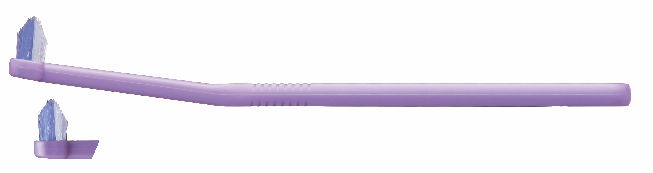 植毛間隔がやや広い、硬めの2列植毛で、ワイヤーを挟み込むようにして毛先を歯に当て、矯正装置周辺の清掃を行います。硬めの植毛のため、プラークや歯表面のステイン除去にも効果を発揮します。植毛部が小さいため、小児にも適しています。