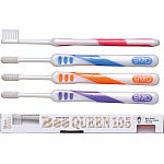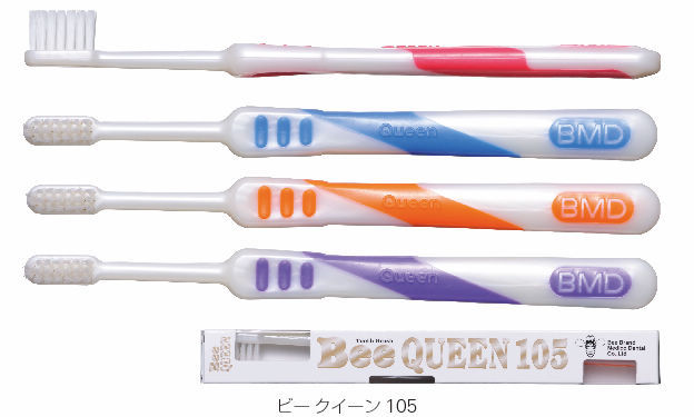 極細特殊加工毛テクノロジーをより進化させ、「NEWスリム毛」を実現しました。超コンパクトサイズのブラッシングヘッドが、口腔内での操作性を高め、また持ち易く磨き易いラバーグリップにより適確なコントロールが可能となりました。ビークィーン95は、毛長9.5mmで、毛材の先端は極細で、高さの均一な植毛が裂溝部や歯頸部などの歯垢を除去し、歯肉炎の予防にも効果的です。ビークィーン105は、毛長10.5mmで、インプラントの歯間部や矯正装着部分のプラークを均一な高さに揃えた極細毛がやさしく除去し、歯肉炎などへの負担も極力抑えられます。耐熱性(100℃)を有しているため、煮沸消毒が可能です。