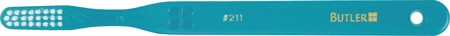Dr. Butlerが開発した歯肉溝内にスムーズに毛先が届くように、グラインダーで1本1本の先端を先細にしたテーパー加工とプラーク除去効果をより高めた毛先の表面をザラザラにしたサテナイズド加工することにより、歯肉溝内のプラークをしっかり除去します。
