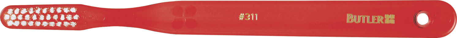 Dr. Butlerが開発した歯肉溝内にスムーズに毛先が届くように、グラインダーで1本1本の先端を先細にしたテーパー加工とプラーク除去効果をより高めた毛先の表面をザラザラにしたサテナイズド加工することにより、歯肉溝内のプラークをしっかり除去します。