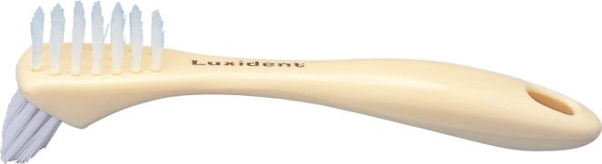 ブラシは便利なツインタフト(2つの植込み)で、短く広い面積のブラシは口蓋や人工歯面に、もう一方のブラシはそれ以外のクラスプなど狭い部分に適しています。