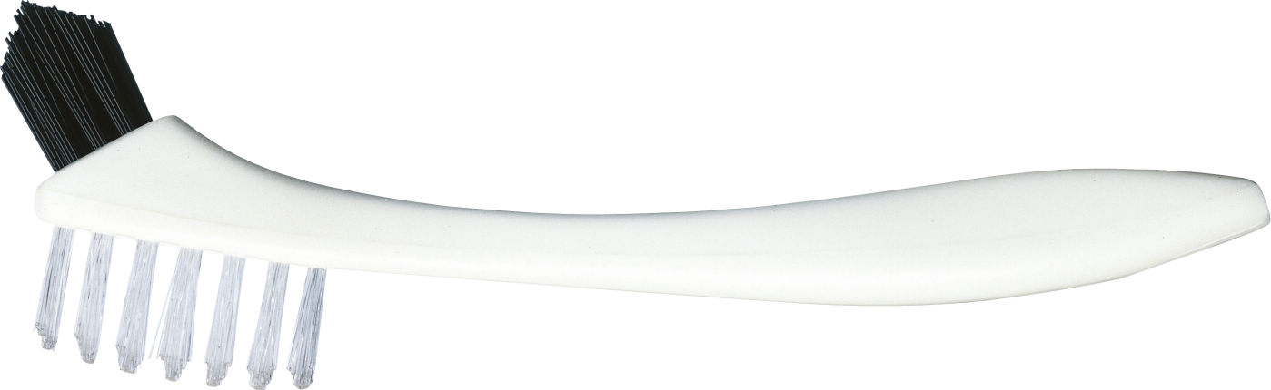 2種類のブラシ部で、磨く部位にあわせてブラッシングできます。ハンドル樹脂は耐薬品性の高いポリプロピレンを採用。