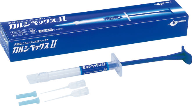 生体親和性に富む、室温(1~30℃)保存が可能な水酸化カルシウム水性ペースト製材で、感染根管治療時や抜髄処置後、乳歯の根管充填など、幅広い適用が可能です。