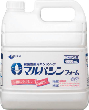 手洗い後もうるおいを保つ、手指にやさしい弱酸性の殺菌性薬用ハンドソープです。殺菌成分トリクロサンを配合しており、ポンプを押すと出てくるきめ細かい泡が手指を清浄化します。微香性(ラベンダーの香り)で患者様にもやさしく、無着色で色移りの心配もありません。
