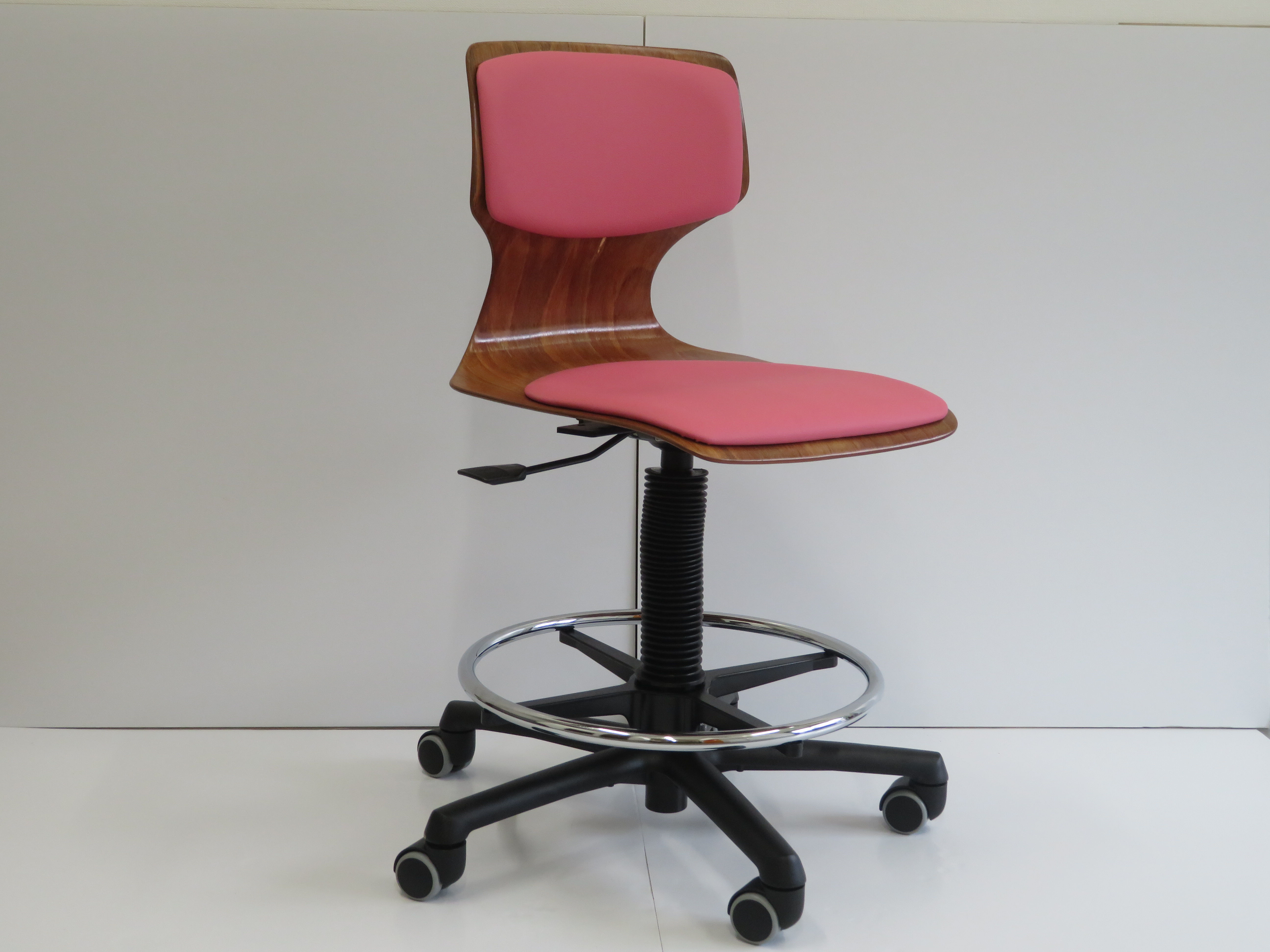 ラボチェアーウッディ〈シートクッション有り〉 フットリング付き ピンク