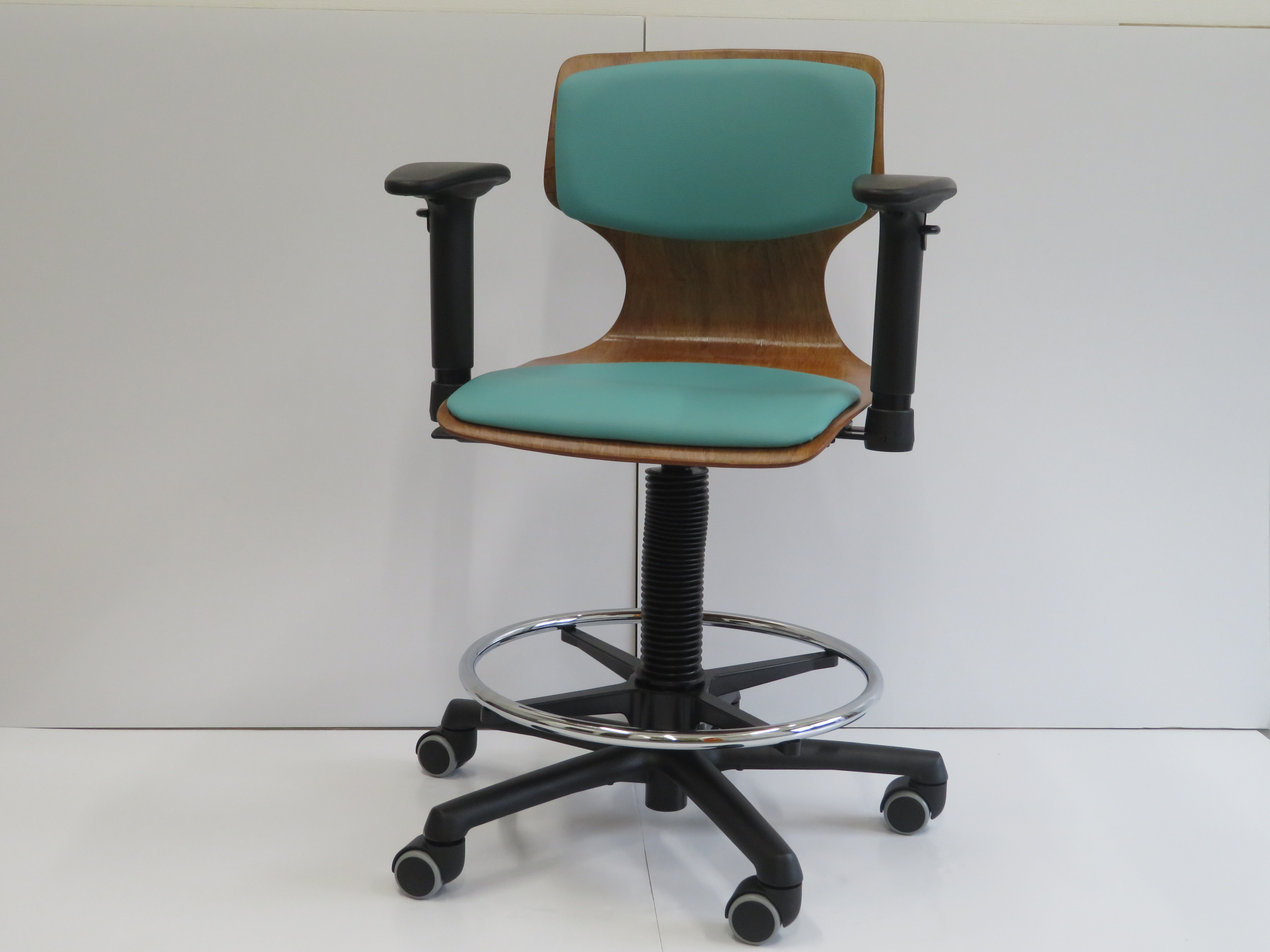 ラボチェアーウッディ〈シートクッション有り〉 アームレスト・フットリング付き グリーン