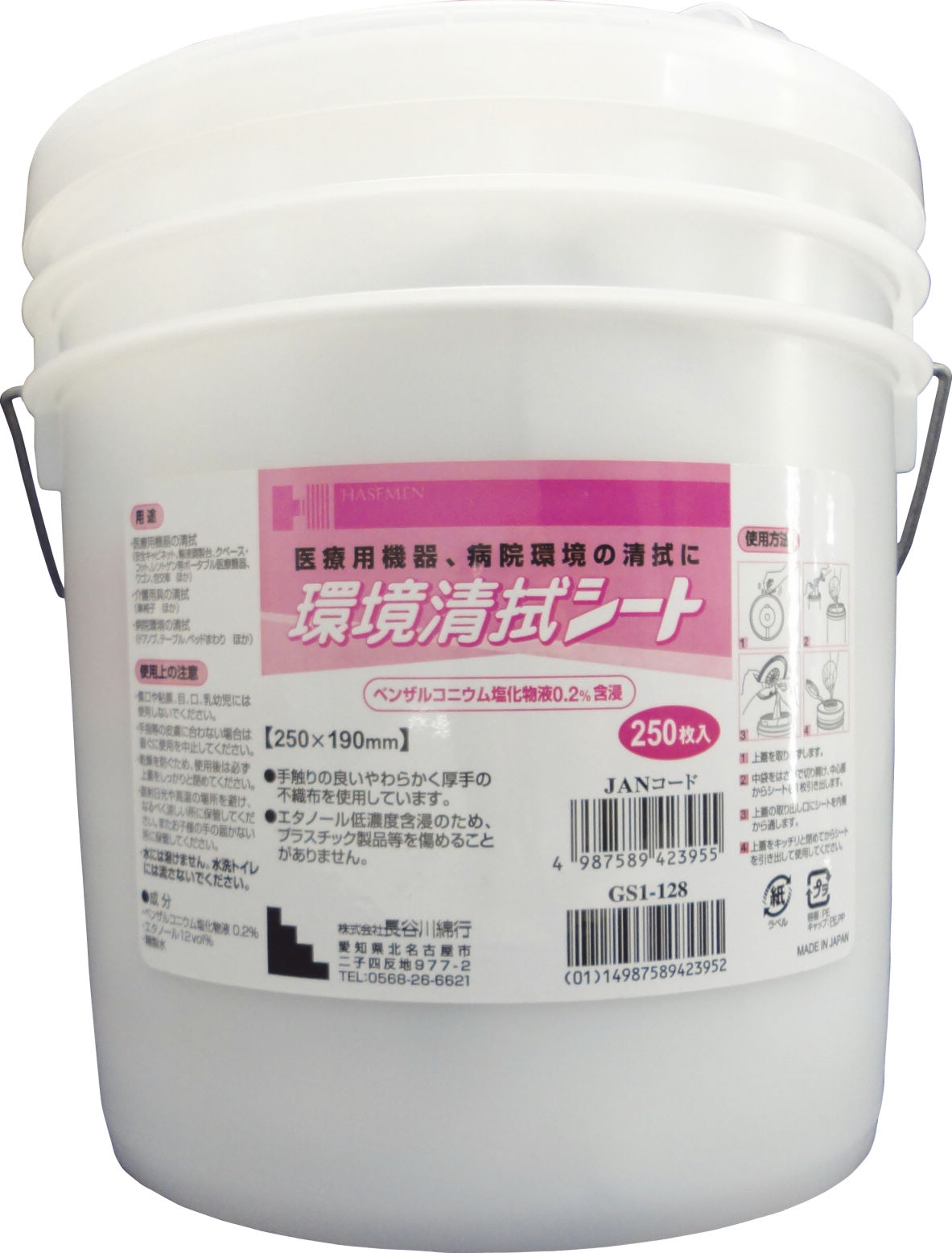 | 仕様 | 【仕様】 - シートサイズ:80枚入 200×140mm 250枚入 詰め替え用250枚入 250×190mm - 容器サイズ:80枚入 φ105×180mm 250枚入 φ220×250mm - 成分:ベンザルコニウム塩化物液0.2%、エタノール12vol%、精製水 |
