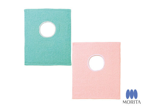 水しぶきや汚れなどの飛散から患者さんを守る穴あきタオルです。抗菌・防臭加工を施した国産品綿100%のタオルを採用しているため、衛生的です。