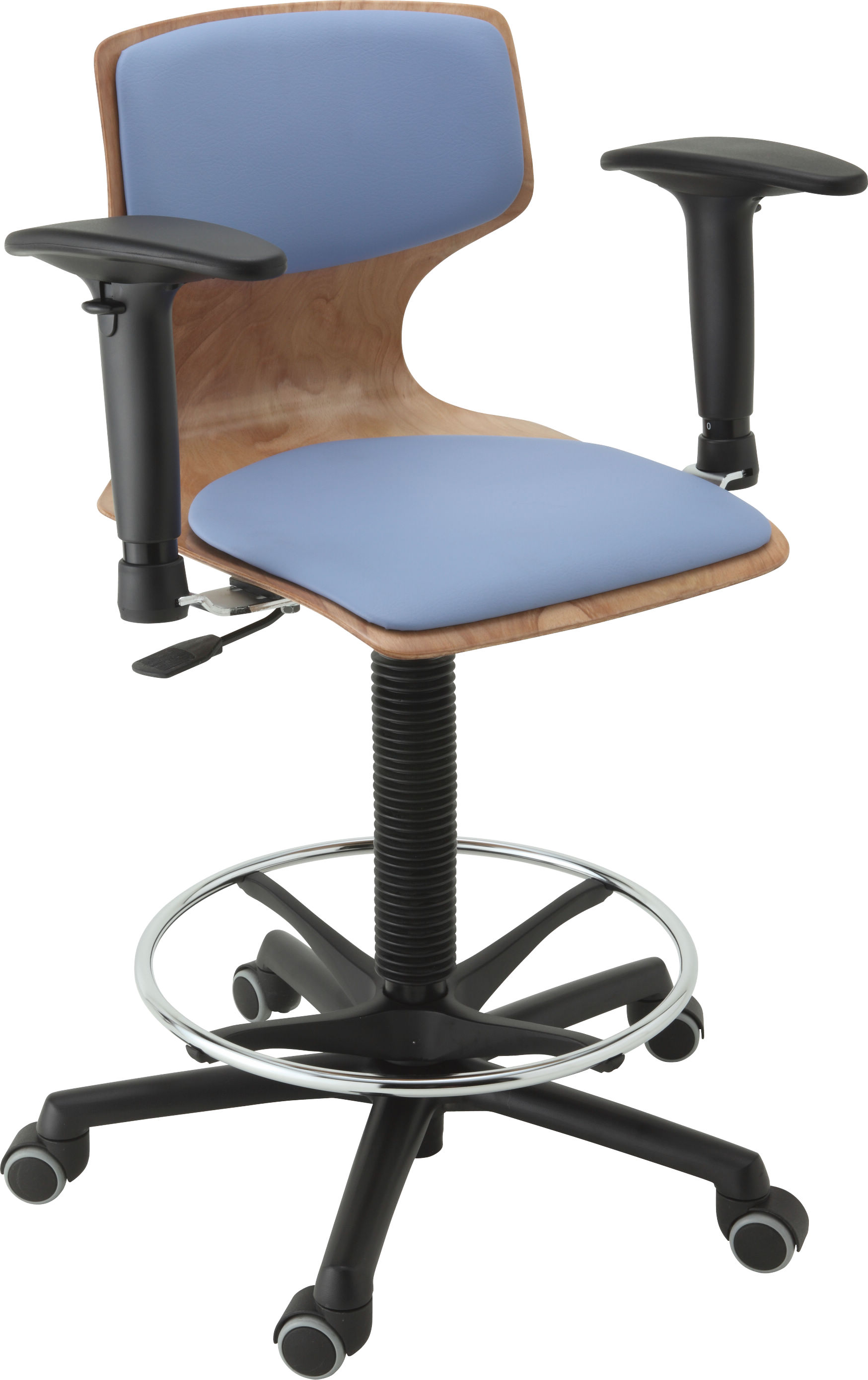 201060092BL | ラボチェアーウッディ〈シートクッション有り〉 フットリング付き ブルー |