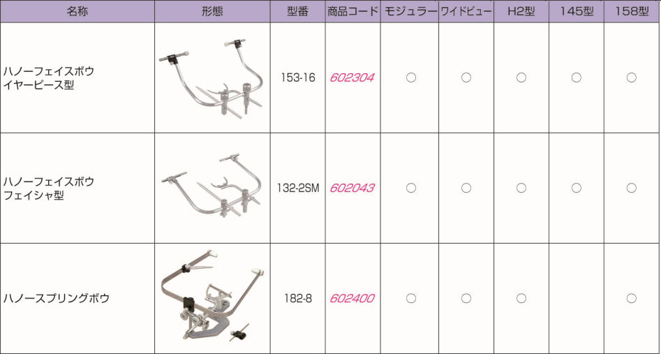 アルミニウム製なので非常に軽いフェイスボウです。外耳道に固定を求めるため、術者ひとりでの操作が可能です。オービタルポインター付き。