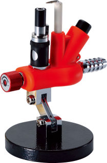 約1,000℃の還元炎が得られ、これ1台で鑞着まで可能です(ボンベ等は不要)。火口の角度は約180度調整でき、着火と消火はワンタッチ、またシンプルな構造で垂れたワックスの掃除も簡単です。