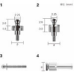 | 仕様 | 【形状】直径には4.5mmと5.0mmがあり、歯肉粘膜の厚みによりショート(1.8mm)とロング(3.0mm)の2種類がそれぞれの直径に用意されています。カラー上部端から高さ(2.6mm)とボール部直径(φ2.25mm)は共通のサイズです。 【材質】チタン |