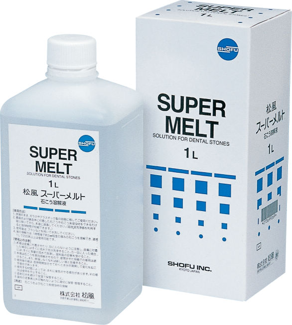 義歯に付着した石膏や、鋳造物に付着した石膏系埋没材を短時間で強力に溶解する、発泡タイプの石膏溶解液です。液が透明で濁りませんので、溶解の状態も確認し易くなっています。歯科用金属やレジン等に対して為害作用もありません。