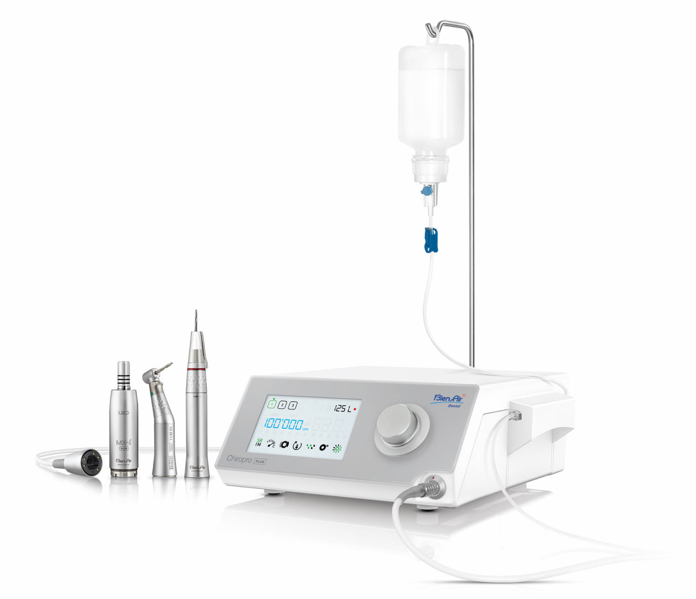 骨形成や埋伏智歯抜歯などの外科手術に使用される1:1等速、1:2倍速、今回、新たに2.5倍速のハンドピース(ハンドピースは何れも別売品)がラインナップされ、それぞれギア比の設定が可能。