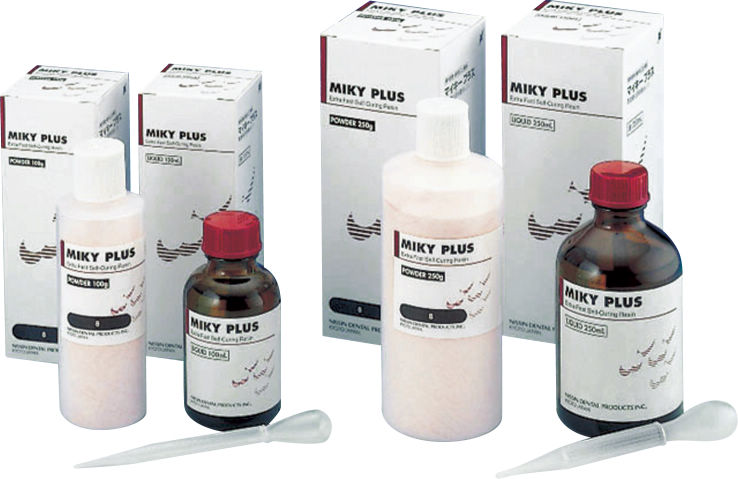 気泡発生が少なく、可使時間が長い急速硬化即時重合レジンです。歯冠色及び歯肉色があり、歯冠色はテンポラリークラウン等に、歯肉色は義歯床の修理等多目的に使用できます。