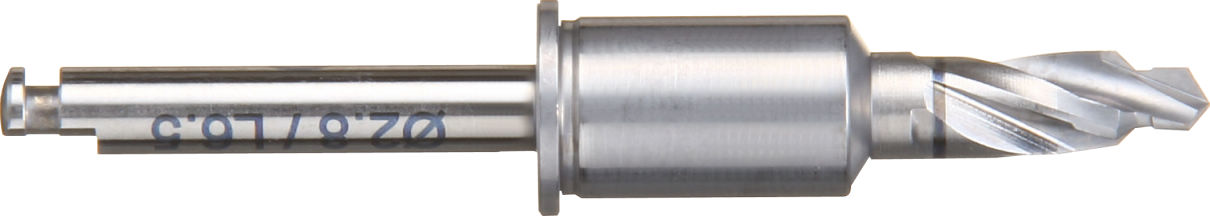 システマティックに統合されたドリルにはガイドスリーブに誘導される部分と形成深度をコントロールするストッパーが付与され、より予知性の高いインプラントの埋入が可能になります。