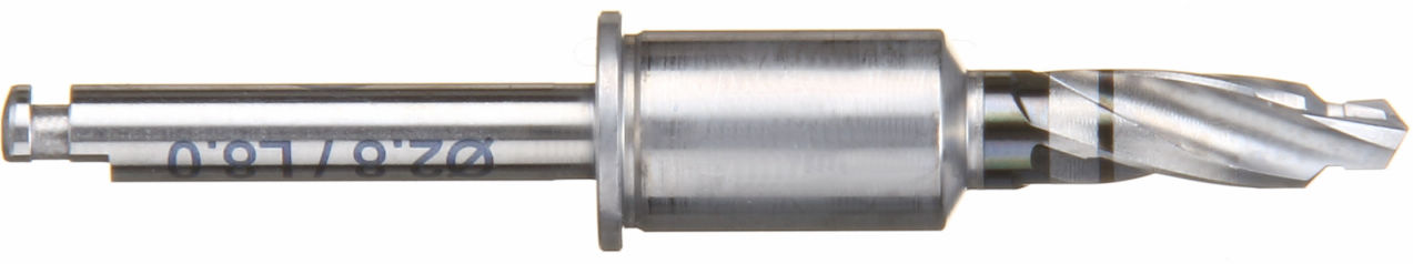 システマティックに統合されたドリルにはガイドスリーブに誘導される部分と形成深度をコントロールするストッパーが付与され、より予知性の高いインプラントの埋入が可能になります。