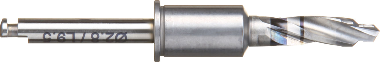 システマティックに統合されたドリルにはガイドスリーブに誘導される部分と形成深度をコントロールするストッパーが付与され、より予知性の高いインプラントの埋入が可能になります。