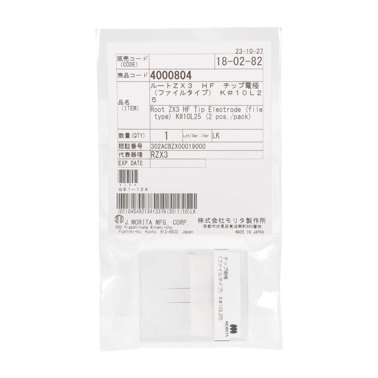 | 仕様 | 【商品構成】 - 根管長測定モジュール:本体、プローブコード×1、対極×5、ファイルホルダー×3、単3形アルカリ乾電池×4 - 高周波モジュール:本体、対極(ワイドタイプ)×3、対極棒×1、チップ電極用ホルダー×1、チップ電極用ファイルホルダー×3、高周波用フットスイッチ×1、高周波用プローブコード×1、高周波用中継コード×1、充電用ACアダプタ×1、チップ電極3種(ファイルタイプ、エンドファイルタイプ、メスタイプ用)、キャップ 【商品仕様】 - 根管長測定モジュール 電源電圧 単独使用時:DC6V(単3形アルカリ乾電池4本) 高周波モジュール接続時:DC9.6V(Ni-MH充電式電池) H100×W95×D85(mm) 質量約390g(乾電池含む) - 高周波モジュール H90×W約95×D約105(mm) 質量約360g 充電用アダプター 入力 AC100V-240V、50Hz-60Hz 出力 DC15V - 根管長測定モジュール+高周波モジュール H約100×W約95×D約110(mm) 質量約550g |