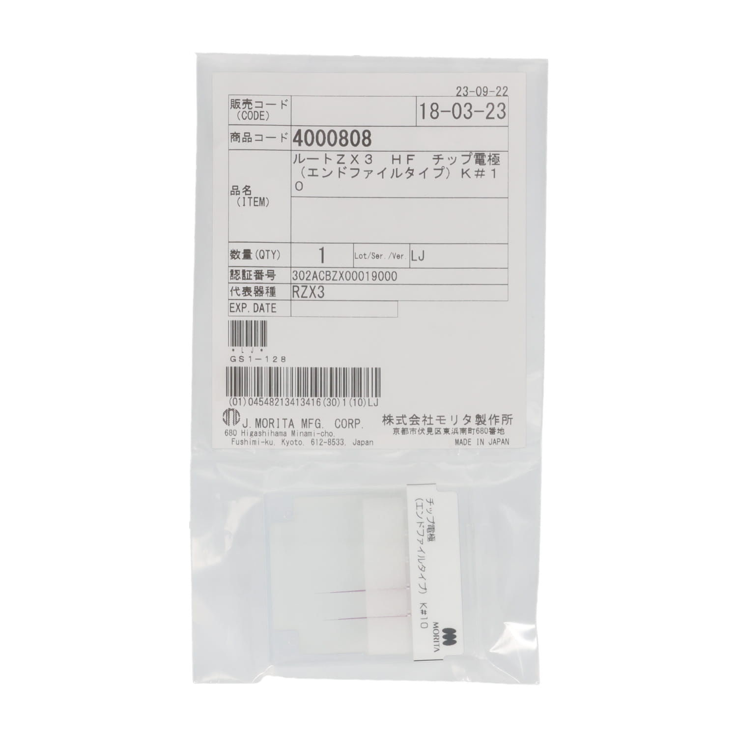 | 仕様 | 【商品構成】 - 根管長測定モジュール:本体、プローブコード×1、対極×5、ファイルホルダー×3、単3形アルカリ乾電池×4 - 高周波モジュール:本体、対極(ワイドタイプ)×3、対極棒×1、チップ電極用ホルダー×1、チップ電極用ファイルホルダー×3、高周波用フットスイッチ×1、高周波用プローブコード×1、高周波用中継コード×1、充電用ACアダプタ×1、チップ電極3種(ファイルタイプ、エンドファイルタイプ、メスタイプ用)、キャップ 【商品仕様】 - 根管長測定モジュール 電源電圧 単独使用時:DC6V(単3形アルカリ乾電池4本) 高周波モジュール接続時:DC9.6V(Ni-MH充電式電池) H100×W95×D85(mm) 質量約390g(乾電池含む) - 高周波モジュール H90×W約95×D約105(mm) 質量約360g 充電用アダプター 入力 AC100V-240V、50Hz-60Hz 出力 DC15V - 根管長測定モジュール+高周波モジュール H約100×W約95×D約110(mm) 質量約550g |
