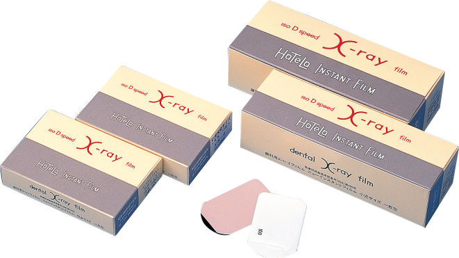 D感度口内法用インスタントフィルム。インスタント現像(明室30秒)・機械現像・暗室(暗箱)現像に対応。整理番号付き。