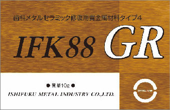 | 仕様 | 【用途】単冠、ブリッジ 【成分分量】金88.0%、白金9.8%、その他(イリジウム、インジウム、コバルト) 【溶融温度】(液相点)1,140℃(固相点)1,040℃ 【硬さ】190Hv 【耐力】440MPa 【熱膨張係数】14.6×10-6K-1(50~500℃) 【色調】金色 【包装】10g |