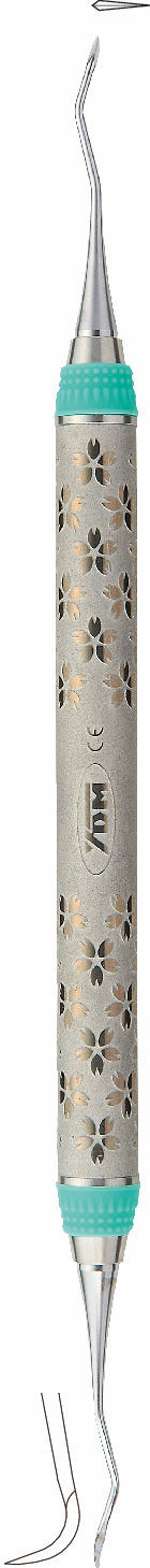 小さいブレードと複屈曲したシャンクで、臼歯部の近遠心面までアプローチできます。