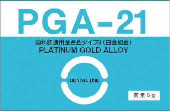 | 仕様 | 【用途】クラウンブリッジ 【成分分量】金76.5%、白金1.0%、パラジウム3.0%、銀9.0%、銅10.0%、その他(亜鉛) 【溶融温度】(液相点)1,000℃(固相点)940℃ 【硬さ】軟化135Hv、硬化170Hv 【耐力】軟化300MPa、硬化285MPa 【色調】金色 【包装】5g |